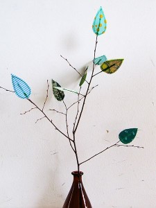 Vor einiger Zeit hatte ich bei Amy Butler eine witzige Anleitung entdeckt, die genau das Richtige ist für Leute, die schon Mitte Februar den Frühling herbeisehnen. Deshalb habe ich mir heute Blätter an meine Birkenzweige gezaubert.