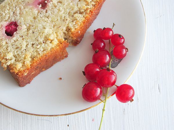 Zutaten: 170 g Butter, 250 g Zucker, abgeriebene Schale einer unbehandelten Zitrone, 1 Messerspitze Vanillepulver, 2 Eier, 180 g Buttermilch, 180 g Mehl, 2 Teelöffel Backpulver, 7 g Mohnsamen, 100 g Johannisbeeren
